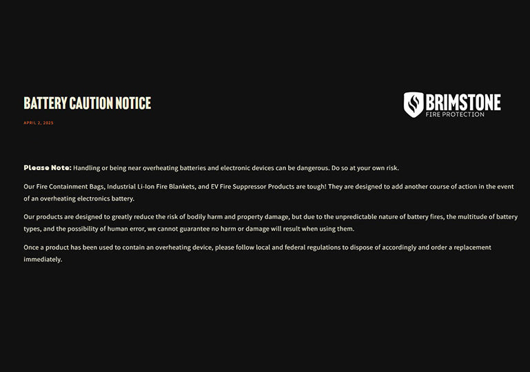 - Works independently or with Brimstone EV Fire Suppressor Blankets (ST, XL, XLE, 2XL).