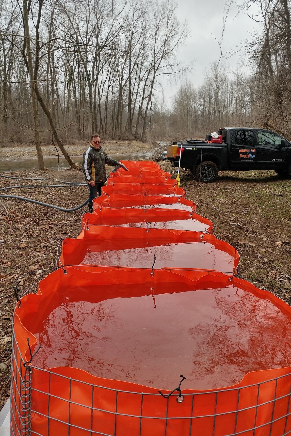 Rapid Reservoir is used for containment or temporary storage of oil/oily water during the recovery process on spills as well as shoreline barrier protection during an oil spill response.